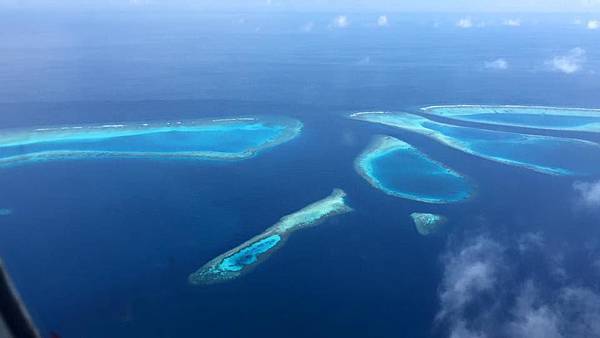 搭水上飛機從 Kuda Huraa 島到 Landaa Giraavaru島大概需要半個小時,一路上都會出現大大小小形狀不一的珊瑚礁和飯店 ,不少乘客一路上手機都沒有離過手,拚命往窗外拍照或攝影。