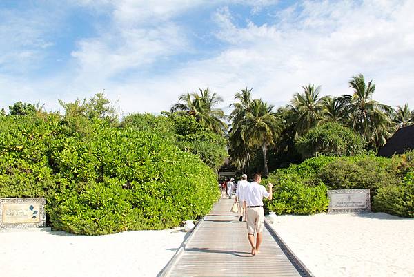 從碼頭前往大廳的途中,還會經過一段像是台灣大學般的椰林大道,光是氣勢就比 Kuda Huraa島要強上一大截,走在這筆直的沙灘路上真的覺得備感尊榮,只差沒有鋪上一席紅地毯來迎接每一位客人。