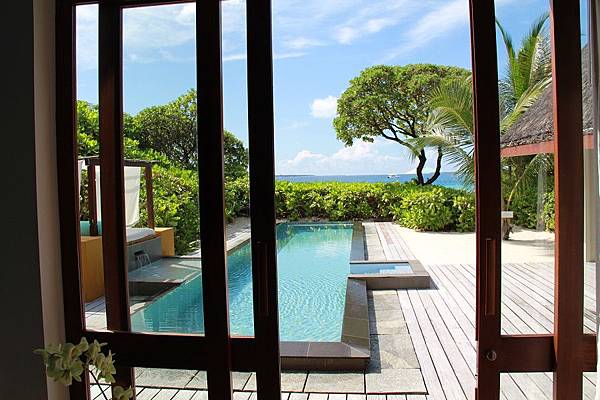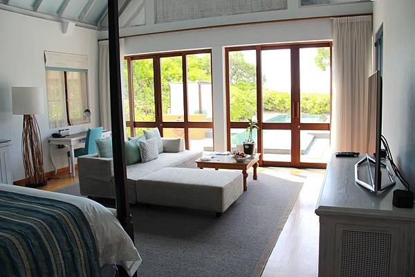 島嶼的面積很大,辦理完check in手續後就會有人開著Buggy載到別墅去。俗話說好酒沉甕底,水上屋當然是排到後面再住,首先入住的房型是 Beach Villa with Pool 的沙灘屋。