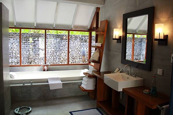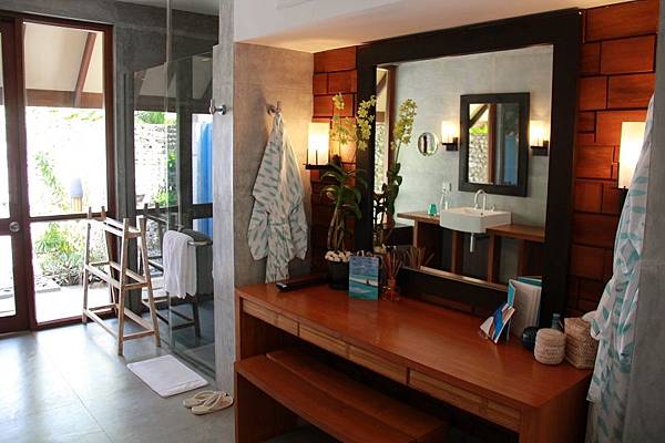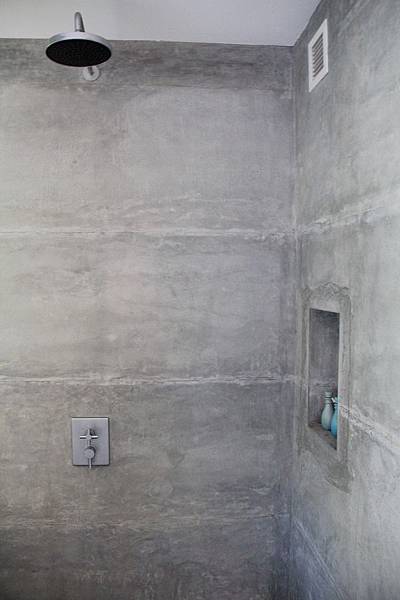 廁所浴室都位在別墅的最深處,一走進去就很喜歡那種清爽性,地板和牆壁都採用原始高質感的清水模打造,簡約中又帶有設計感,光著腳踩在地板,觸感冰冰涼涼的好舒服呢~~