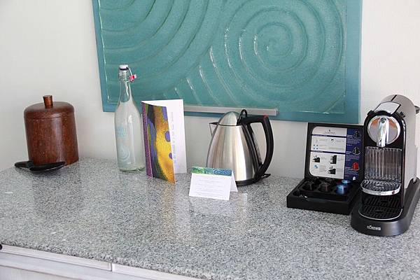 冰箱上的檯面與Kuda Huraa 島的房間一樣,備有一台Nespresso咖啡機和咖啡膠囊,即使喝完了,隔天打掃房間的人員都會幫忙補滿。