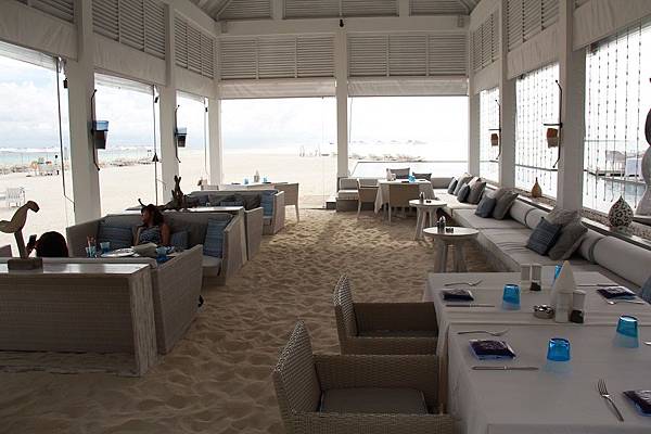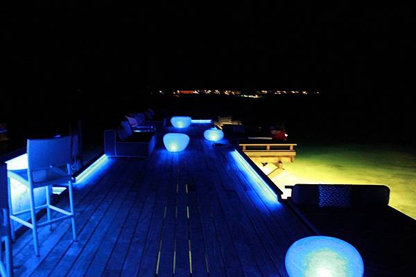 Blu 位在島嶼的最西側,裡面的設計色調大量使用藍、白色系,感覺很像是 Kuda Huraa 島上 Reef Club 餐廳的進階版。