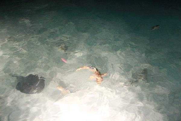 時間越晚,也就越多人陸續聚集在此,因為每天晚上10點只要是沒有下大雨,都會有工作人員餵食小鯊魚和魔鬼魚的活動。