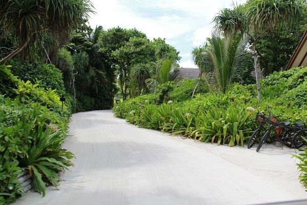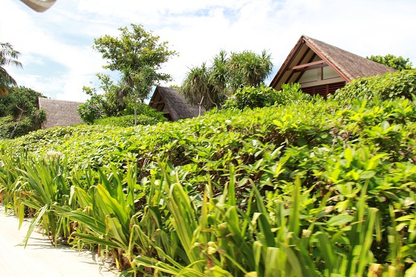 在房間稍作休息後就可以出來走一走,這時才發現島上的植物種得比第一個島上還要茂密,植物看的出來都有人在定時修剪,整齊中又能為別墅裡的客人帶來隱密性。