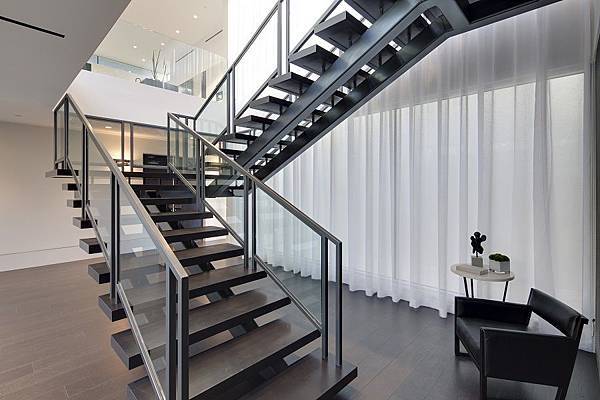Carla Ridge的主臥房調整為與客廳和餐廳同一樓層,規劃為開放式格局且呈ㄇ字型,再以玻璃材質與其他場域進行區隔,彷彿光盒子的設計得以保留空間的完整性,延續人文簡約的風格,亦適合「框住」各色風景;再從細節體現典雅的優雅底蘊,如天花板的內嵌燈光,點綴出舒眠的柔緩氛圍,讓屋主與妻子能放鬆心情,進入深沉的優質睡眠。
