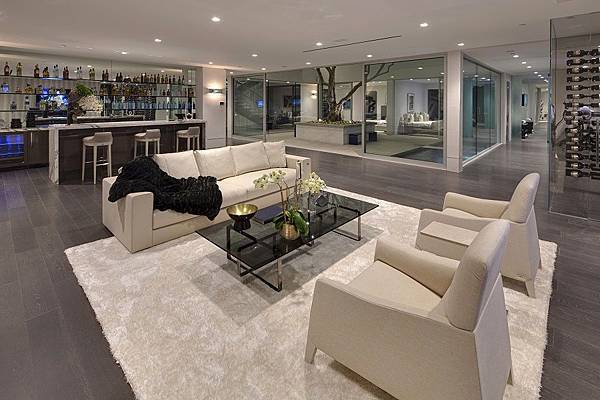 下層設有其餘的套房和多樣化的設施,它們都圍繞著十分醒目的中央庭院,包含12個座位的電影室、桌球室、健身房和一間蒸汽浴室,讓這遼闊的居家空間,顯得貼心又舒適。
