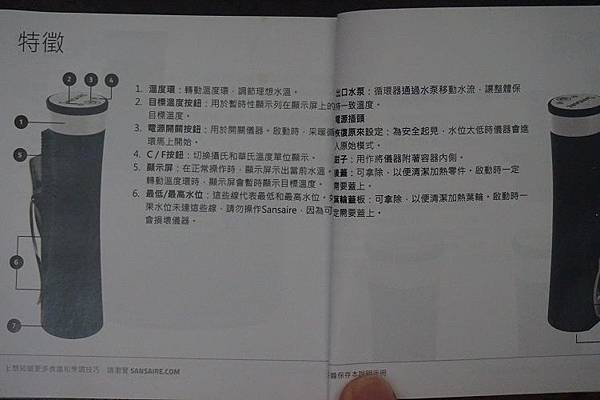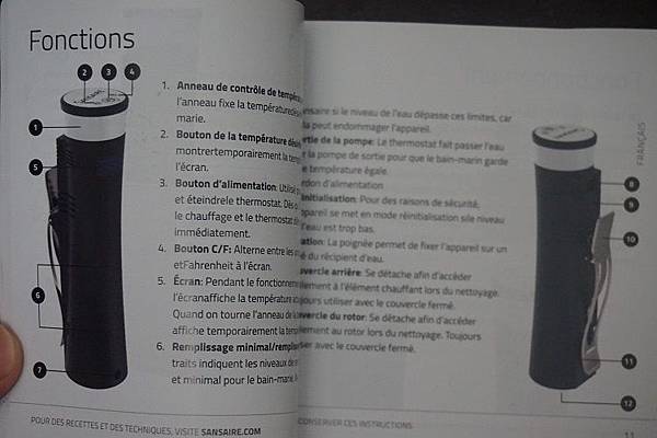 白色的盒子裡裝有機器一台、一份料理指南和關於Sansaire的使用手冊,記得使用手冊一定要先拿起來細讀一遍。即使整台機器很容易操作,不過還是有不少細節要看過才會知道,像是機器上每個按鍵的用途、如何保養機器和遇到問題時的解決方式。