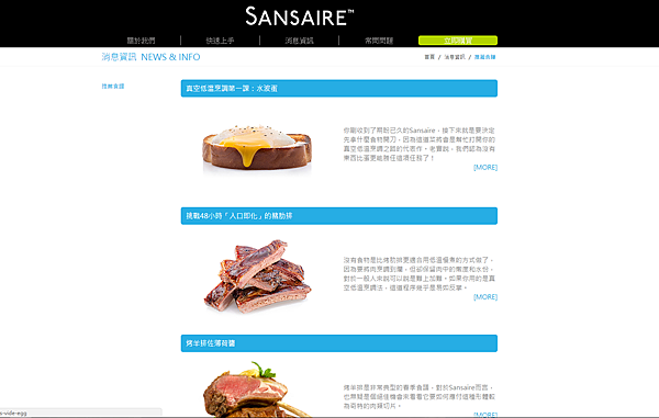 點進去 Sansaire Taiwan 的主網頁後,除了版型的設計很吸引我以外,裡面也有介紹一些食材的基本料理方法和注意事項,資訊方面算是很齊全。