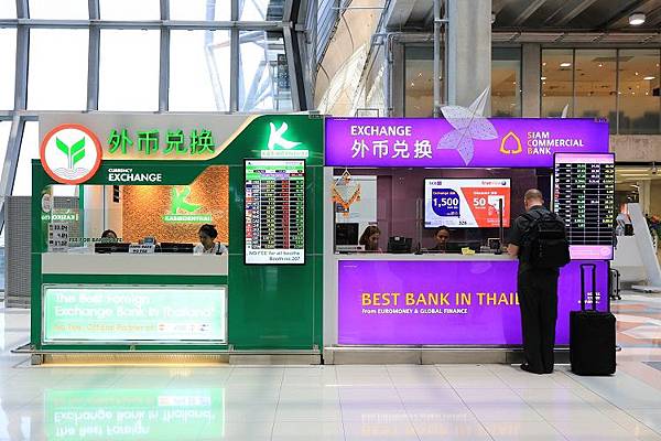 覺得泰銖帶太少的人,機場裡還有一次兌換的機會,旁邊電子看版上有當天的匯率狀況可以參考。