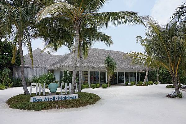 Seaside Finolhu(Finolhu Baa Atoll) 斗大的標誌就位在接待處的門口前,對於許多想要拍照留念表示到此一遊的旅客來說,務必要記清楚這個位置。