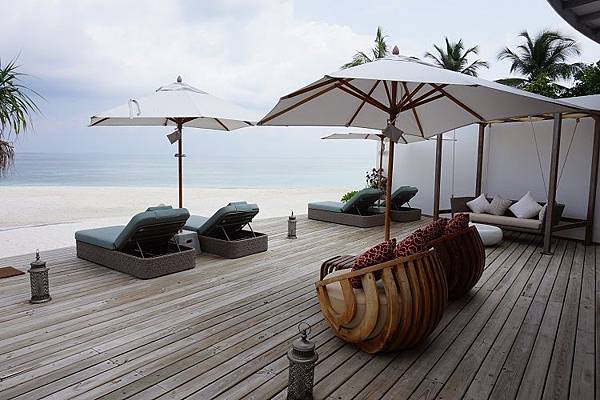 SPA中心的後方就是一大片沙灘且面對海景,於是特別把這塊區域規劃給做完SPA後的客人享用,在此喝杯飲品稍作休息,調適一下身體狀態後再離開。