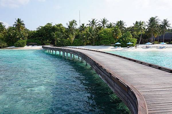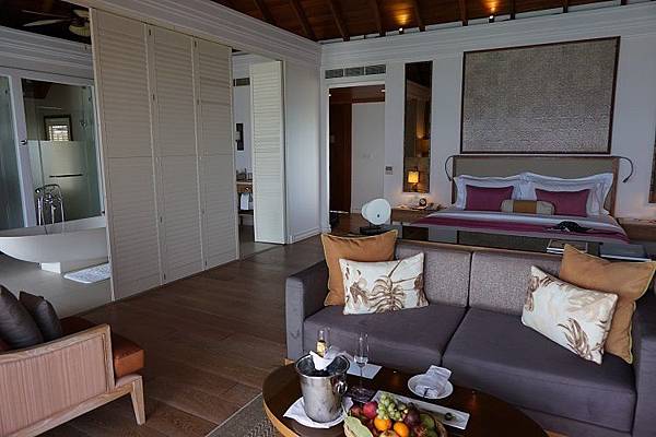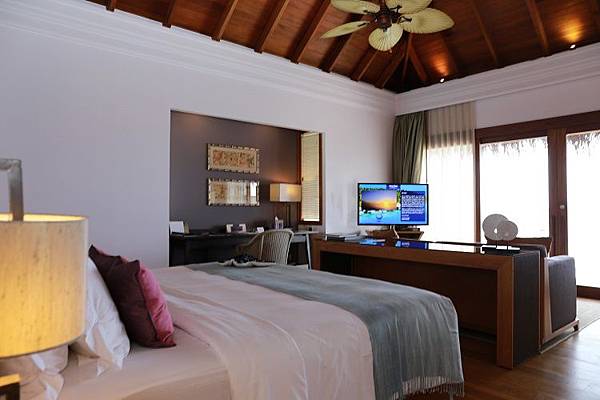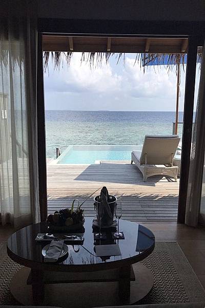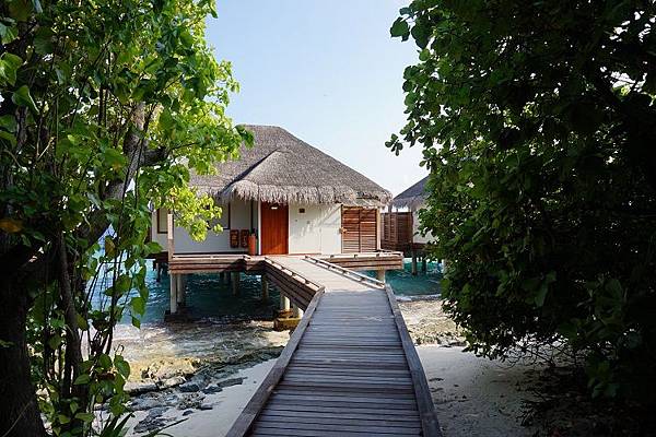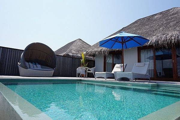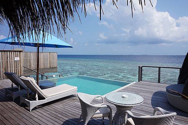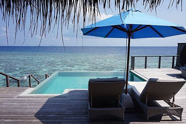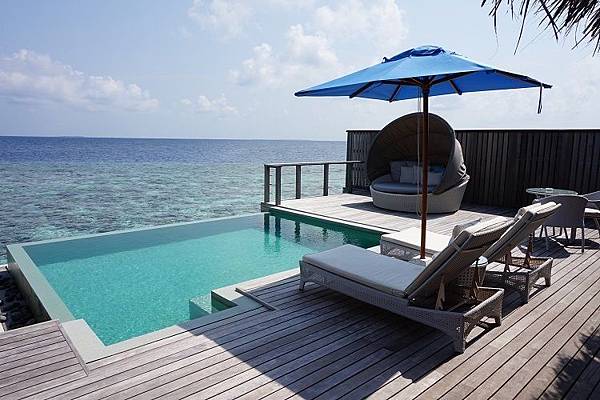 最後也來稍微介紹一下文章前面提到的 Water Villa with Pool,雖然名為水上屋,但是與 Ocean Water Villa with Pool 的方位完全不一樣,位在島的另一側。從圖片上來看就曉得設立的位置距離沙灘較近,大約在海水與岸邊的交界處,除此以外,最大的不同點就屬從這裡下水浮潛距離珊瑚斷層區域極為接近。