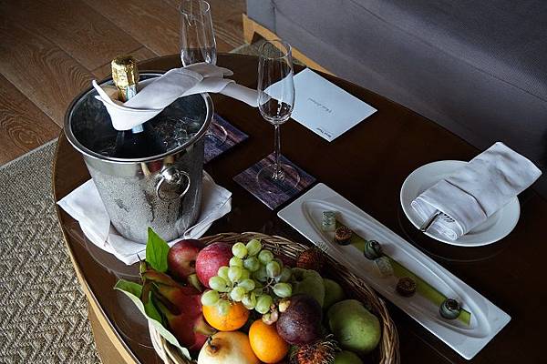氣泡酒與迎賓水果籃肯定是少不了的,常住旅館的專業人士,其實可以從贈予的氣泡酒品牌和水果份量看出對於旅客的重視程度,從桌上的這些東西來看, Dusit Thani 的確沒令人失望。