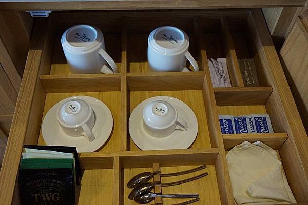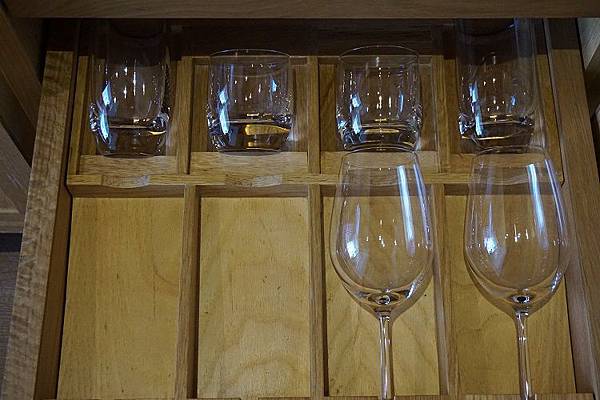 其他如零食、烈酒、玻璃杯和咖啡杯等也都在門口這個櫃子的抽屜裡。