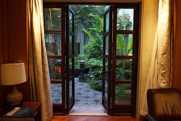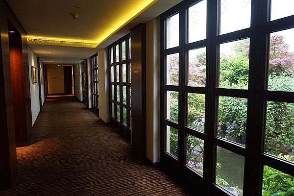 從大廳走到我入住的房間需要花上一點時間,室內的沿途上也都並非是左右兩側一間接著一間單調的房門景致,有時候一個轉角就是木質窗櫺式落地窗,把戶外的庭園景色引進室內而給予眼睛為之一亮的驚喜。