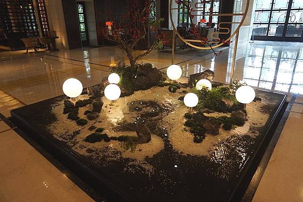 大廳裡最顯眼的莫過於這座水池,實際上卻又不是十足的水池,另外添加上一些較有詩意的實體元素在其中,成為很好的裝飾物。