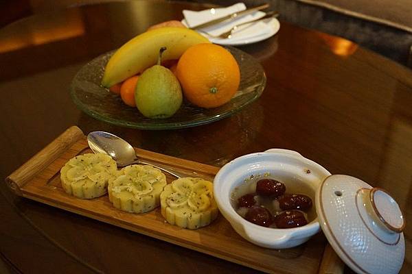 客廳的桌上也放上了迎賓水果、甜點與甜湯,份量不是很多卻有著滿滿的心意在其中。