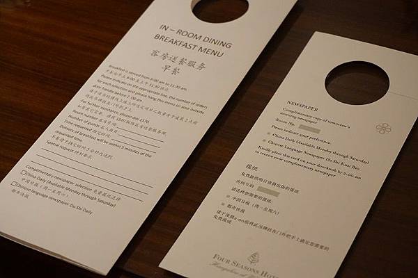整個住宿令我覺得最貼心與印象深刻的,就屬某一天從外面回到房間後看見清潔人員留下的字條與擦拭眼鏡的布,雖然事後一直懷疑是不是因為眼鏡太髒而有些許羞愧,不過連這麼微不足道的小事也被他們視為是工作的一部分,就能理解為什麼每個人提起四季酒店,對於他們的服務總是讚不絕口。