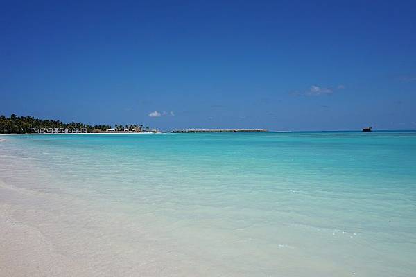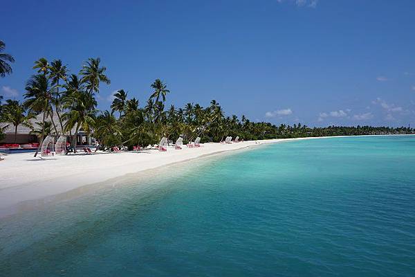 因為這段路是屬於從島上延伸出去,駐足於木棧道上往左右兩側觀看,底下的海水是呈現藍中帶著碧綠,綠意更是隨著沙灘肆意延伸,可見得Kandima這座島的腹地可不小呢!