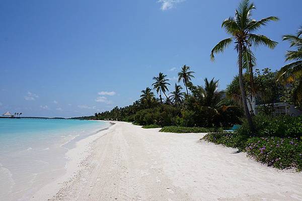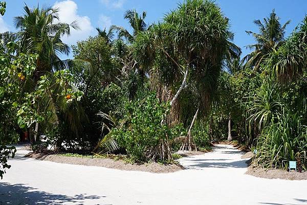 這是 Beach Studio 前方入口處的景色。Kandima 島嶼形狀是呈長條狀,面積也不小,島上的樹木不足以算得上高大茂密,走在路上幾乎毫無陰涼處,因此前往各個地點最好的方式就是打電話叫人開著 Buggy 來房間門口載人。