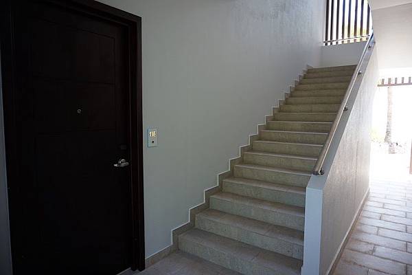 從建築物的後方能看得更清楚,每一棟主要就分成上下兩種房型,比較常會在東南亞度假村裡看到,不過樓上假如住的是陌生人,心裡還是覺得怪怪的,這種住宿型態我想一般人還是不太能接受。除非是一群三五好友來連著包下好幾棟,左鄰右舍都是自己認識的,這樣才會顯得比較有趣。