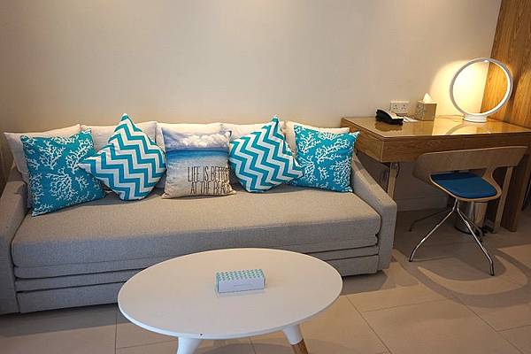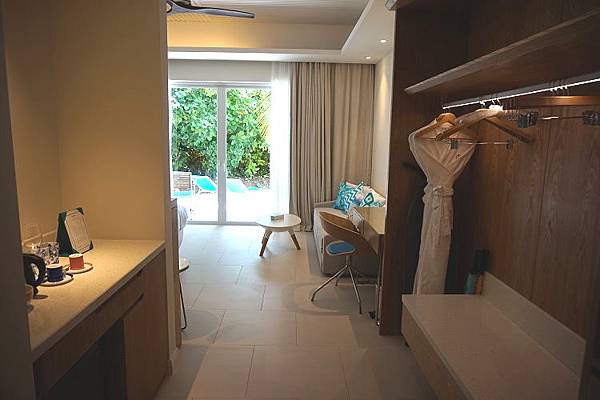 床鋪旁邊還有一個小客廳,房間整體來說就像是住在城市飯店裡的那種格局,坪數上太小、沒有太顯著的特色而給予不及格的分數。而馬爾地夫的飯店向來是一分錢一分貨,這樣的房間價格上當然是便宜許多,不過對於住過許多好飯店的人,除非是打算沒有要長時間待在房間裡,單純把這裡視為一個睡覺的地方,否則還是多花點錢選擇別墅房型。