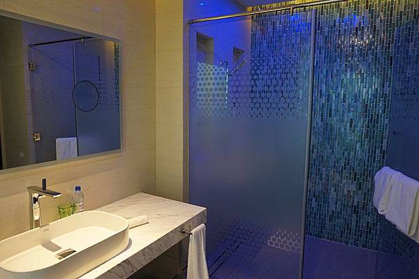 廁所與浴室就是一般常見到的簡單格局,有一個淋浴間但是沒有浴缸,但是對於這個燈光照明我倒是挺有意見,怎麼會給人來到汽車旅館的錯覺,這裡可是高級度假勝地馬爾地夫耶!![]()