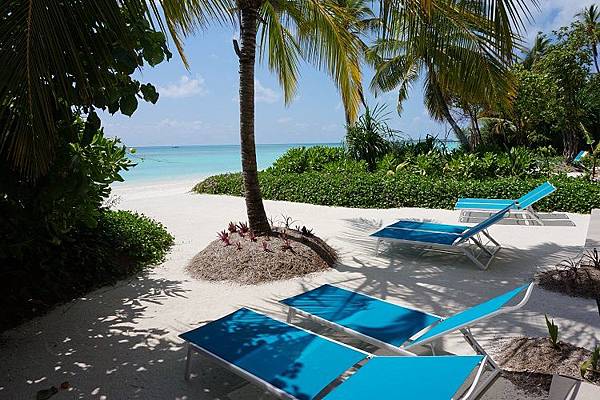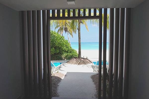 好吧 !走到房間後面,這片沙灘與這片大海的顏色令我釋懷不少,尤其是這裡的印度洋顏色在艷陽照射下,呈現出來的是在大溪地才會出現的 Tiffany Blue ,要不是住在 Beach & Sky Studio 的房型,或許是看不到這片景色的。