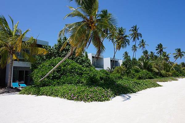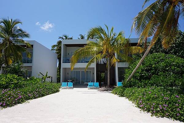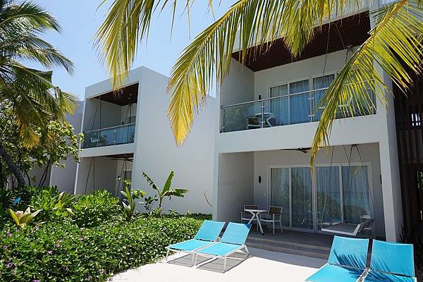 在大廳確認完自己的資料後,就會有人開著 Buggy 載你去到入住的房間,抵達島上的前面幾天住的是 Beach Studio 房型,而這棟建築正是 Beach Studio 的外觀,可以說是我在採用一島一飯店的度假村裡從來沒有看過建築。