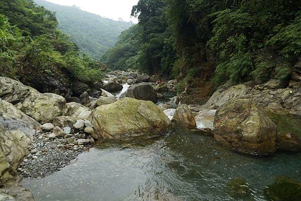 經過一番千辛萬苦,溪流上游處又是另一番景象,時常巨石林立,落差極大,需踏躍而上;或是行經忽淺忽深、大小石塊佈滿的河床中,有的像萬馬奔騰,層層疊疊的成了疊瀑,然而卻多了幾分溫柔婉約的情調,動靜皆美,每個小地方都有讓人意想不到的期待與驚艷。