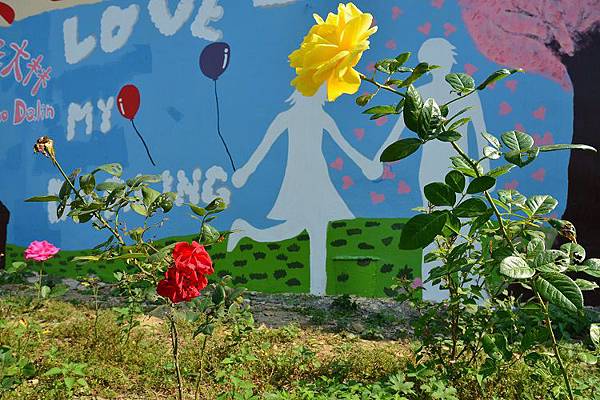圍牆下方原本荒蕪的土地,也紛紛栽種玫瑰花和雛菊等花卉,再別出心裁佈置成LOVE字體愛心花圃,譜出一段專屬於情侶的愛情交響曲。