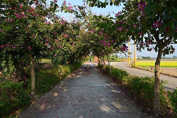 續往前行,兩旁植有多種喬木及花卉,繽紛多彩,一片碧綠的稻田中,不時出現農家細心呵護作物的景象。在短短的路程,卻足以踩踏在糖廠歷史建築的回憶和自然生態樂章旋律上,看得更廣、走得更遠。