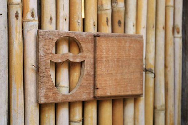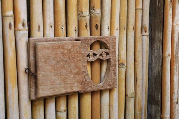 別墅門口外的這個門牌也極有意思,不像一般傳統的飯店在房門口貼上告示牌,而是運用簡單的圖像就說明了「請勿打擾」這一概念。同時,這也是我第一次看到用竹木打造的大門,Six Senses 六善酒店真的是很致力於讓整個度假村融入環境裡。