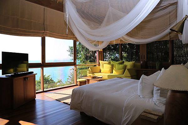 這次入住的房型是Ocean Front Pool Villa,舉目所及充滿著一股清新感,室內在設計和裝飾物上都沒有讓人感到奢華尊榮感,卻有一種讓人把日常生活緊繃的心情給完全卸下,這是因為 Six Senses 向來要給予旅客的是一種心靈上的富足。房間的主要特色就是如同英文字面上講的,而且即使不出房門任何一步也能眺望海景。