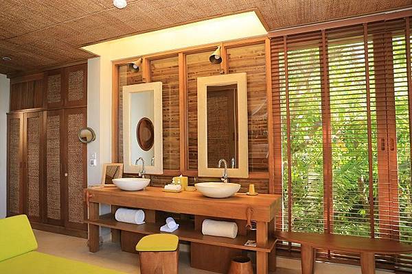 蘇梅島 Six Senses 的浴室是我個人最喜歡的地方,空間夠大又充滿著明亮感,不會帶給人陰暗潮濕感。尤其用上的不少木質設計,在材質上應該是有特別精挑細選過,沒有因為時間或人為使用的狀況下,令木頭產生變色或腐爛破損。