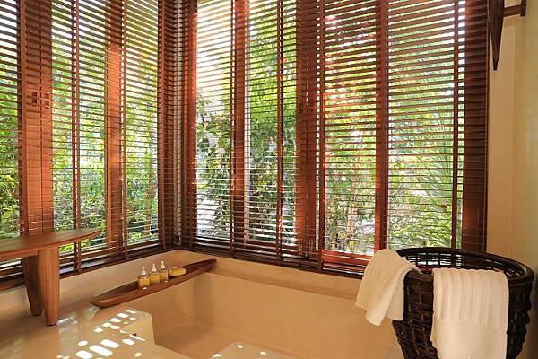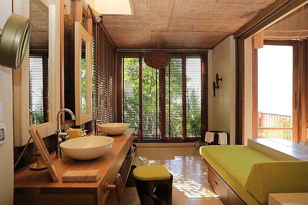 別懷疑,這個凹槽處就是浴室裡泡澡的地方,真的很符合 Six Senses 六善酒店強調的和諧一致,想想看,如果在這裡改成放上一個白色浴缸,是不是就破壞整體的美感了呢!