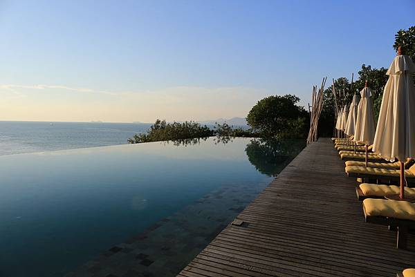 好啦!我必須說Ocean Front Pool Villa的泳池真的不大,一個人游起來真的不太過癮,兩個人更是覺得空間有點不夠,因此蘇梅島六善酒店的主泳池正好彌補了這樣的小遺憾。從圖片裡就可以看出來,主泳池的長度非常足夠、面積也夠大,重點是常常一不小心就會有包場的錯覺,不來享受一下真的會有點浪費呢!