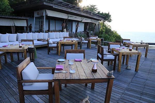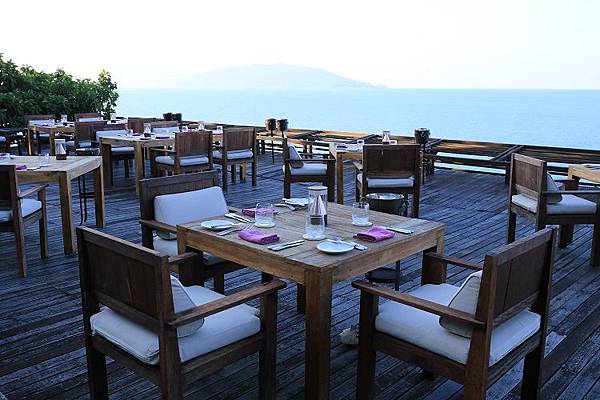 Dining on The Rocks 是整個六善酒店最常獲獎的餐廳,所有的餐桌位在一個開放式的平台上,只在晚上時間營業。白天看起來只不過像是一個能看海景的簡陋餐廳,一旦到了日落和傍晚時分,桌上擺放一盞又一盞的蠟燭燈,伴隨著270度的海景,當下只會看見一對又一對的情侶們,臉上帶著不可思議的表情緩緩就坐。