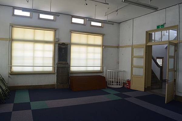 循著樓梯來到廳舍的二樓,中間的梯廳將空間一分為二,梯廳東側原為公會堂,為一開放性空間,已經過大量的重新翻修而顯得較為細緻,目前開放一般團體來函申請各式藝文展覽。梯廳右側空間為消防人員寢室,地面並有一圓洞作為隊員緊急出勤下至一樓之用,做工頗為細緻。