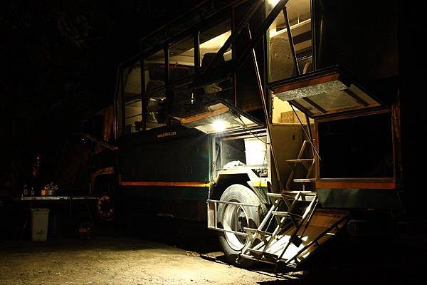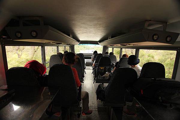 實際乘坐後才知道露營卡車有多麼強大,除了參加一些特別行程需要換乘其他工具,剩餘時間都是待在這輛卡車中。裡面能游刃有餘的走動或伸展,有17個舒適寬敞的座位,並且附上大面積的落地窗,附有冰箱、冷凍庫、個人置物櫃、大容量水塔、行動衛浴設施,以及足夠收納所有人帳篷、折疊椅、行軍床的儲藏空間,使我們能完全無後顧之憂地進行探險。