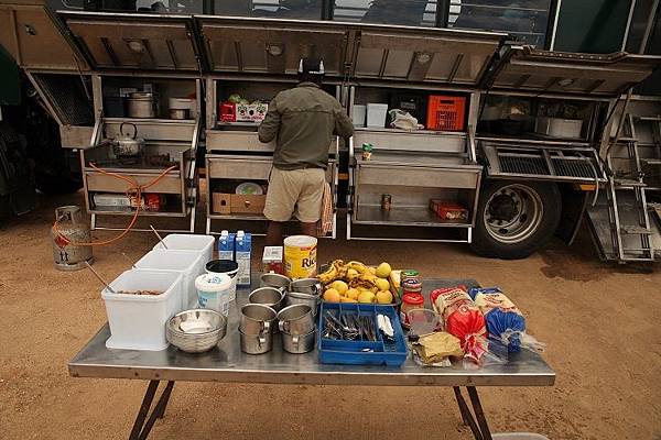 由於露營卡車的緣故,行程規劃上能更能夠不受限制,毋須擔心團員們三餐餓肚子的困境,因為車上配置有行動廚房,無論在非洲各處落腳,都能吃到香噴噴的料理,儼然就是個行動旅館,旅人們溫暖的家。
