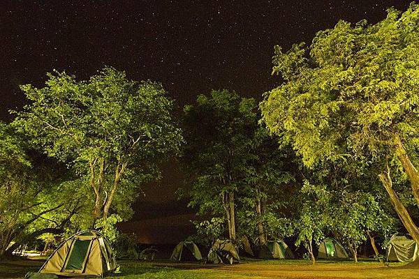 除了看動物,體驗野外生活的露營當然也是這趟旅程的主角,只是這種摒棄旅館住宿的方式,意謂著任何事都需要自己動手,光是抵達住宿營地後的架設帳篷就是一大考驗,嚴格來說甚至有點辛苦,在導遊初步的傳授完技巧後,接下來考驗的就是自己與團隊成員之間的默契,需要共同攜手完成,帳篷從無到有,再從有到無這般搭建與拆除的反覆作業過程中,當下或許顯得不耐煩和繁瑣,事後再回想起來,其實這正是一天中最甜蜜的負荷。