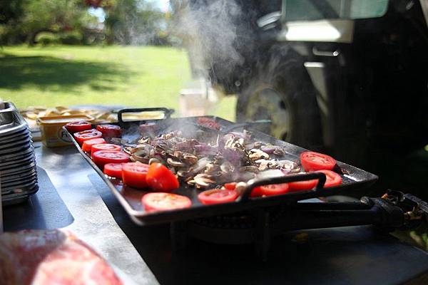 吃飯則是我這種露營新手心中最讚嘆的時刻,這台卡車的強大超乎想像,因為它能立刻變成餐車,導遊則成為了料理主廚,流理台、瓦斯爐及夜燈等用品一應俱全,加上出發前車上便會裝載足夠的食材,玩到哪就能吃到哪,泡麵和料理包在這裡真的都顯得窮酸了。