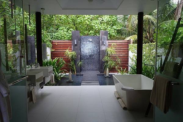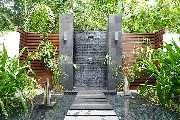 其實除了室內淋浴間,戶外的露天區域也設有淋浴處,就位在打開門後的盡頭處,只要走過鋪設在水池上方的地磚後即可,下大雨時就不適合了。試著幻想一下,在這樣私密不受打擾的空間,周圍還有著綠色植物陪伴,兩人世界就此展開,Niyama 尼亞瑪度假村擁有的不只是時尚潮流,就連營造浪漫也很有一套呢!我想林志穎會選擇Niyama 尼亞瑪度假村,其實是不無道理的。