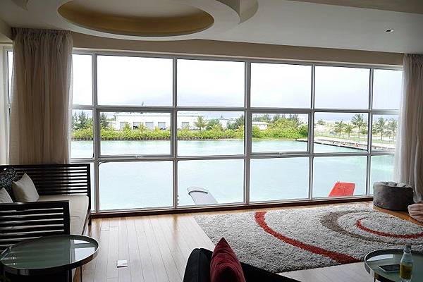 休憩區前方的大面積落地窗下面就是水上飛機的停靠處,真的可以好好地從上面近距離看一下。