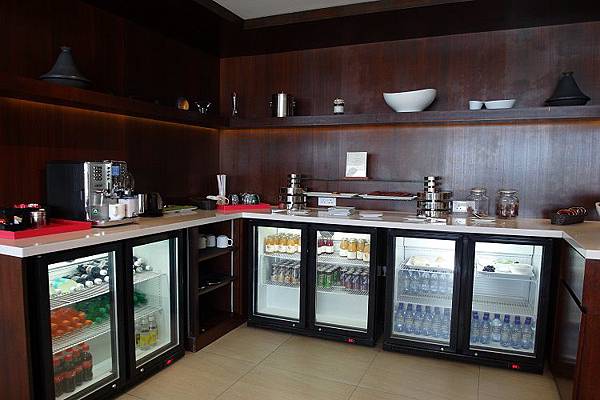 櫃子上的零食和飲品種類很多,除了咖啡和水其它幾乎都是要額外收費的,又是另一種看得到吃不到的概念。