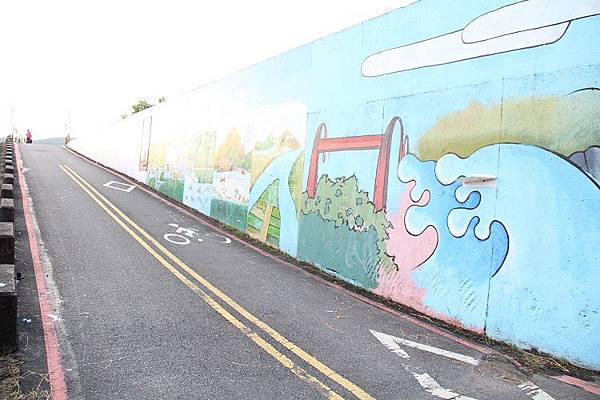「社子島自行車道」共有兩處出入口,一為洲美橋下的三角公園,另一處則位於百齡橋的左右堤岸,若是從百齡橋處進入,還能發現色彩鮮豔的彩繪牆與逗趣的水鳥圖樣,不難感受當地居民對於休閒藝術的重視度,還未上路,即能抱有期待的心情。