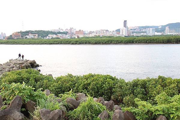 左手方堤外是茂密的紅樹林濕地,退潮時,可以走在河岸邊,追尋足跡,探訪招潮蟹橫行泥灘的逗趣模樣;其間,不時有小白鷺飛掠點綴,輕鬆寫意。特別是夕陽落下,看著晚霞揮舞手中的彩筆,更會將天空和海面映紅,有如多幅美麗的畫作而令人讚嘆不已。