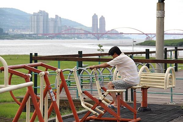 亭外還有由里辦公室出資架設的 10 項運動器材列席堤上,在疏鬆筋骨、流汗顧健康的同時,還可以向遠方眺望,難怪總是高朋滿坐。