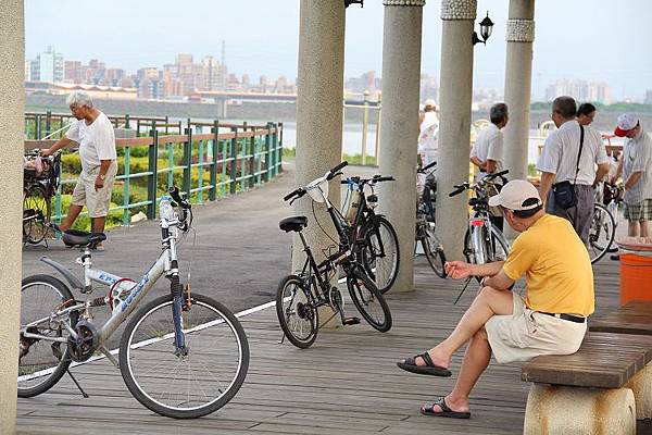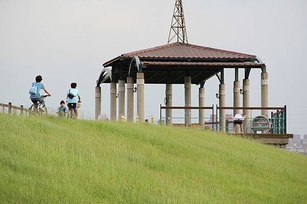 公園中醒目的是採咖啡色系的大涼亭,以及數根高聳的海鳥造型路燈,這裡也是社子島環島自行車道的中繼站,只要經過此地,必定會在此稍做停留。